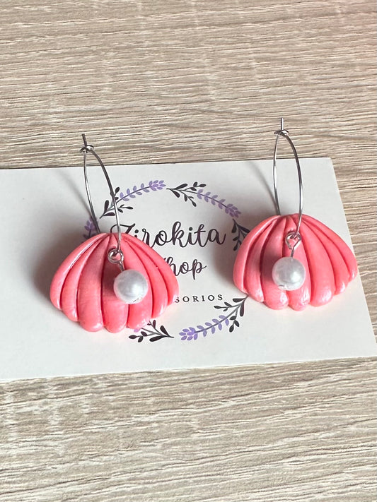 Aros de concha rosa y perla
