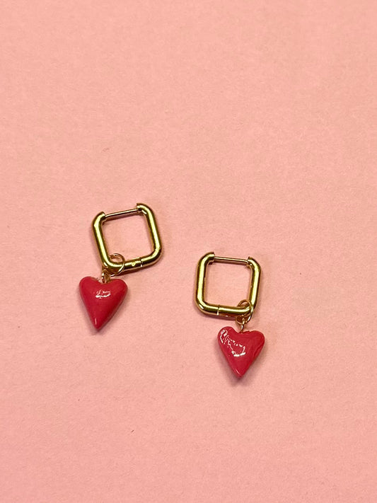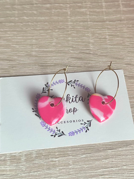 Aretes de corazón estampado rosa.