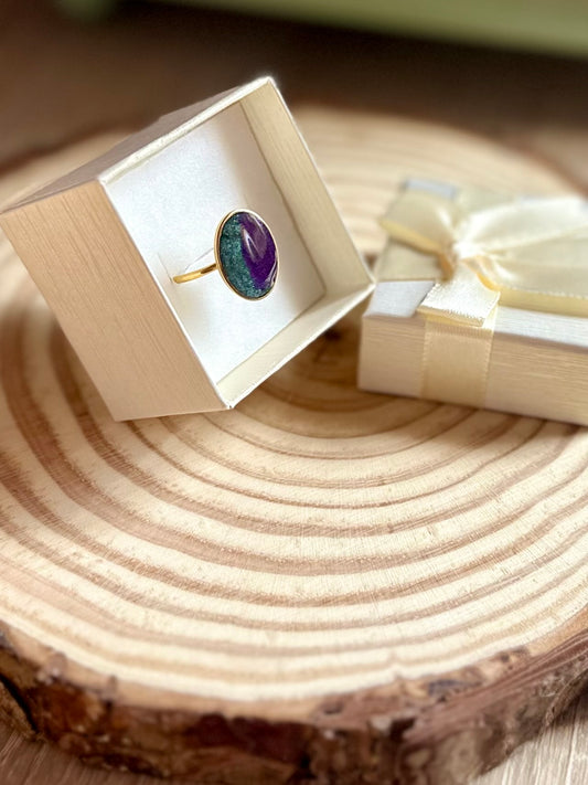 Anillo verde y morado en dorado
