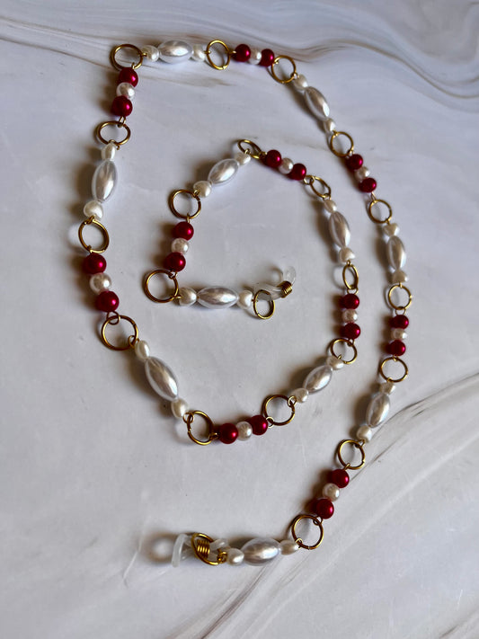 Cadena para gafas con cuentas y perlas rojas y blancas